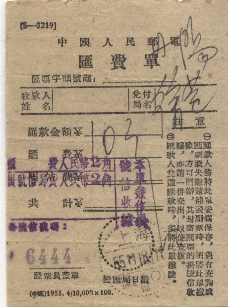 <   1955年11月18日使用于上海的年代趣味藏品 ~ 点图放大