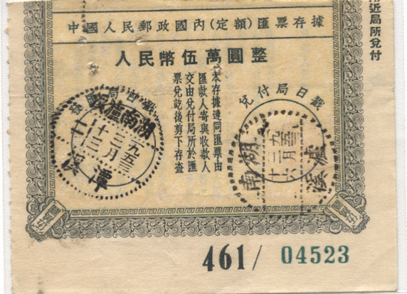 <   1953年03月13日使用于潭溪的年代趣味藏品 ~ 点图放大