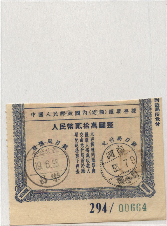 <   1953年06月19日使用于乐昌的年代趣味藏品 ~ 点图放大