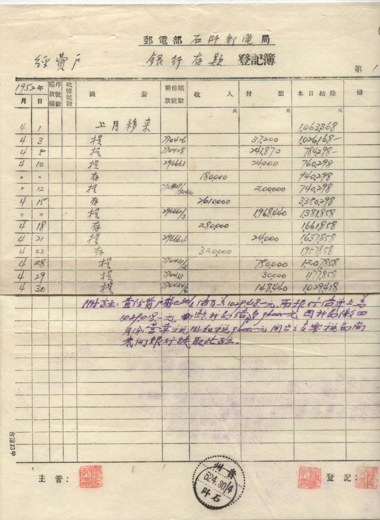 <   1952年04月30日使用于石阡的年代趣味藏品 ~ 点图放大