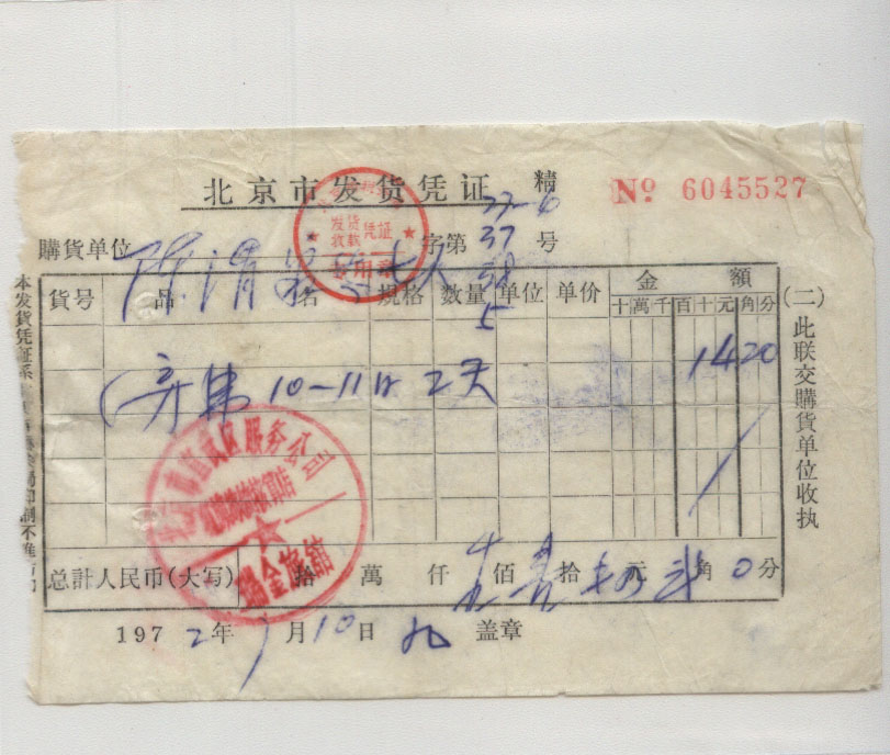 <   1972年07月10日使用于北京的年代趣味藏品 ~ 点图放大