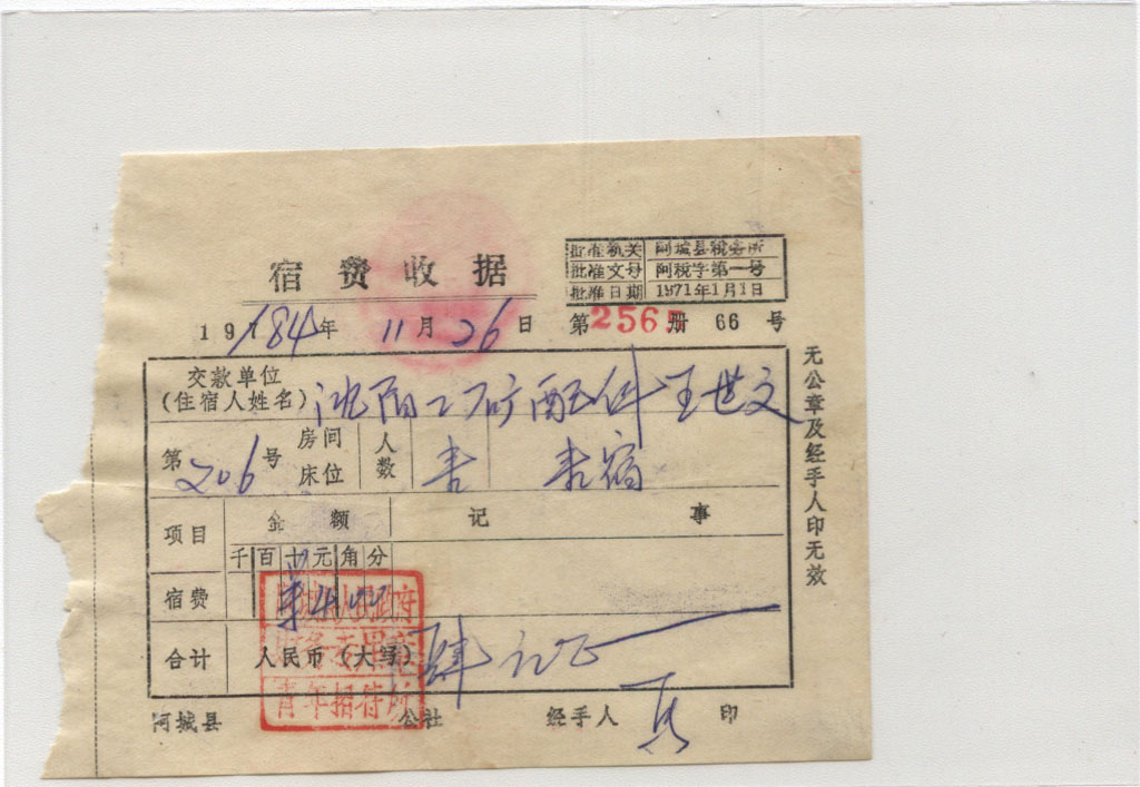 <   1984年11月26日使用于沈阳的年代趣味藏品 ~ 点图放大