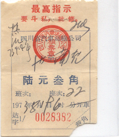 <   1973年08月19日使用于四川的年代趣味藏品 ~ 点图放大