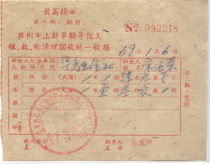 <   1969年01月06日使用于苏州的年代趣味藏品 ~ 点图放大