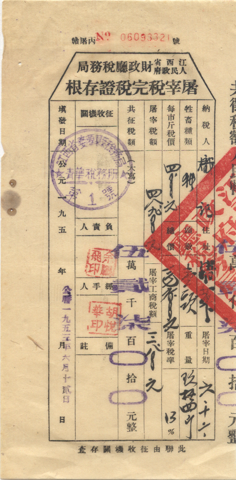 <   1953年06月12日使用于婺源县的年代趣味藏品 ~ 点图放大