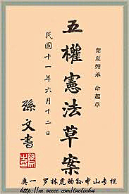 自1904年起,孙中山即有“五权宪法”的思想架构,经过十多年的南北对抗与挫折失败,直到1921年3月20日,孙中山决定重建革命队伍时,才在广东省教育会开始全面地讲述了他的五权宪法学说。