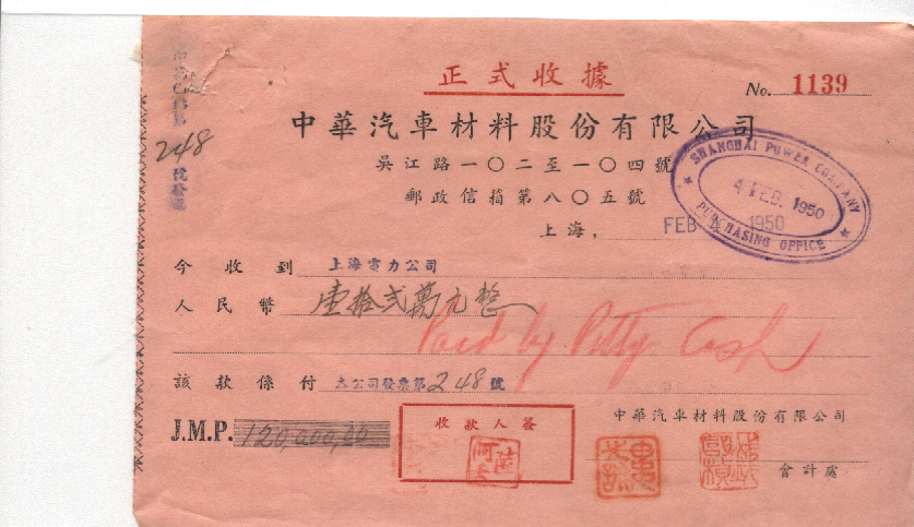 | 上海 | 上海电力公司 | | | 全戳邮票 |