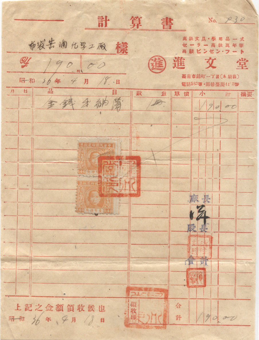 1947年04月18日台南戳 *