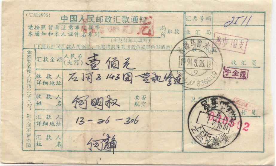 【 新疆乌鲁木齐 -- 830019 --9 】