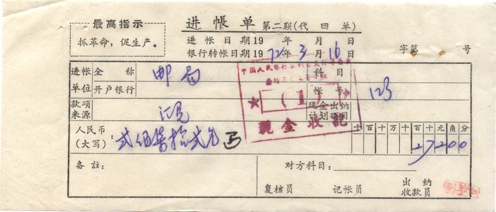 <   1972年03月16日使用于龚场的年代趣味藏品 ~ 点图放大