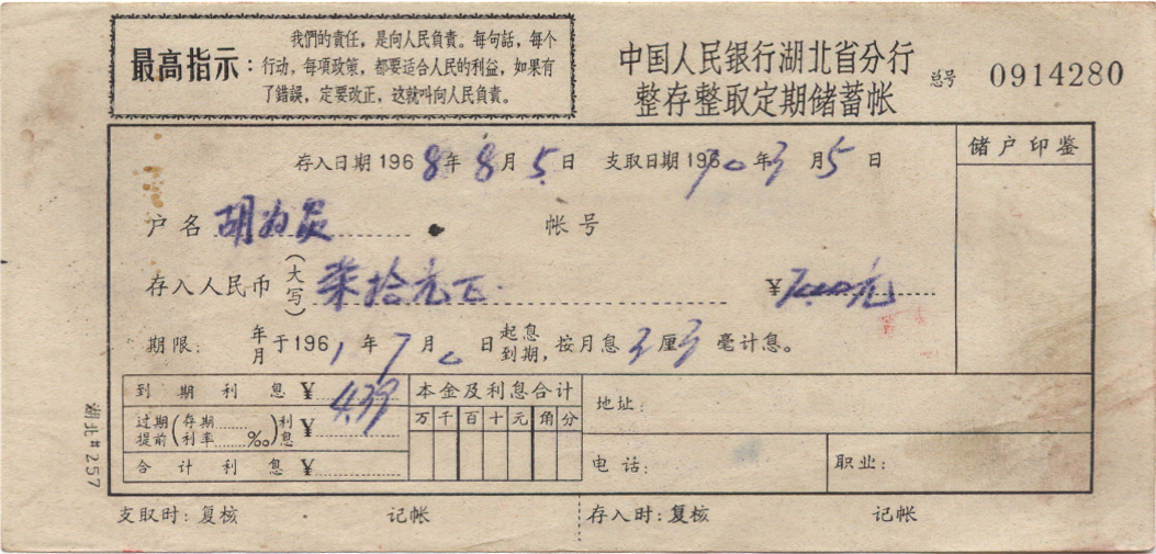 <   1968年08月05日使用于湖北的年代趣味藏品 ~ 点图放大