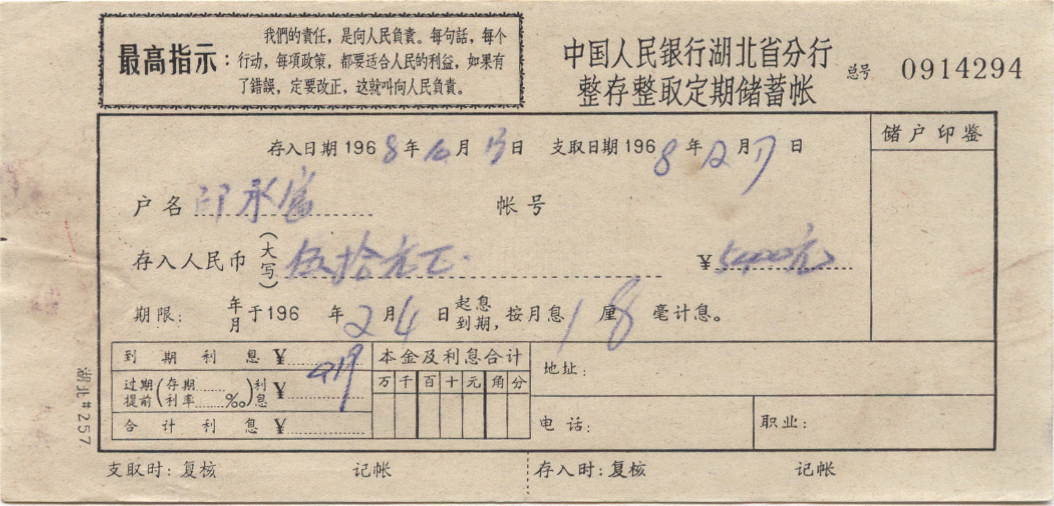 <   1968年10月13日使用于湖北的年代趣味藏品 ~ 点图放大