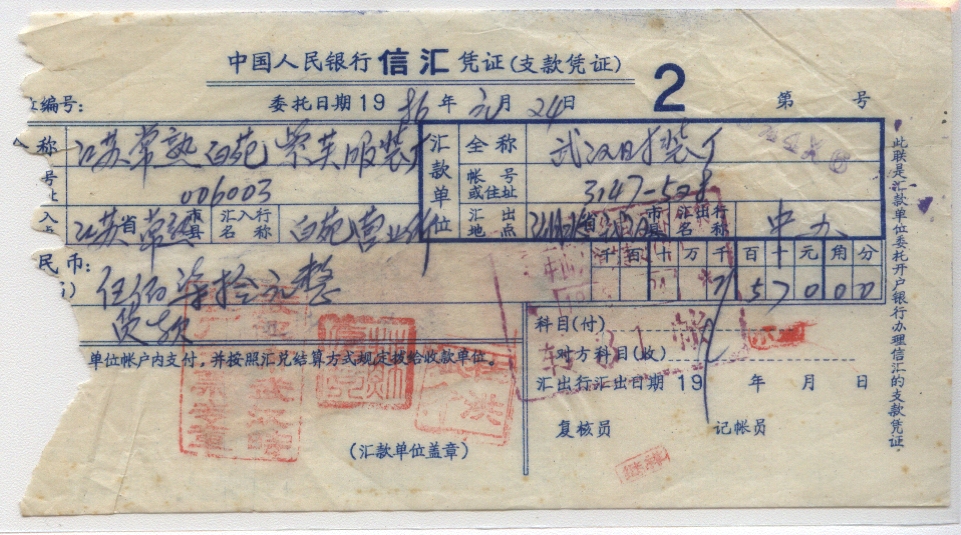 <   1986年01月24日使用于武汉的年代趣味藏品 ~ 点图放大