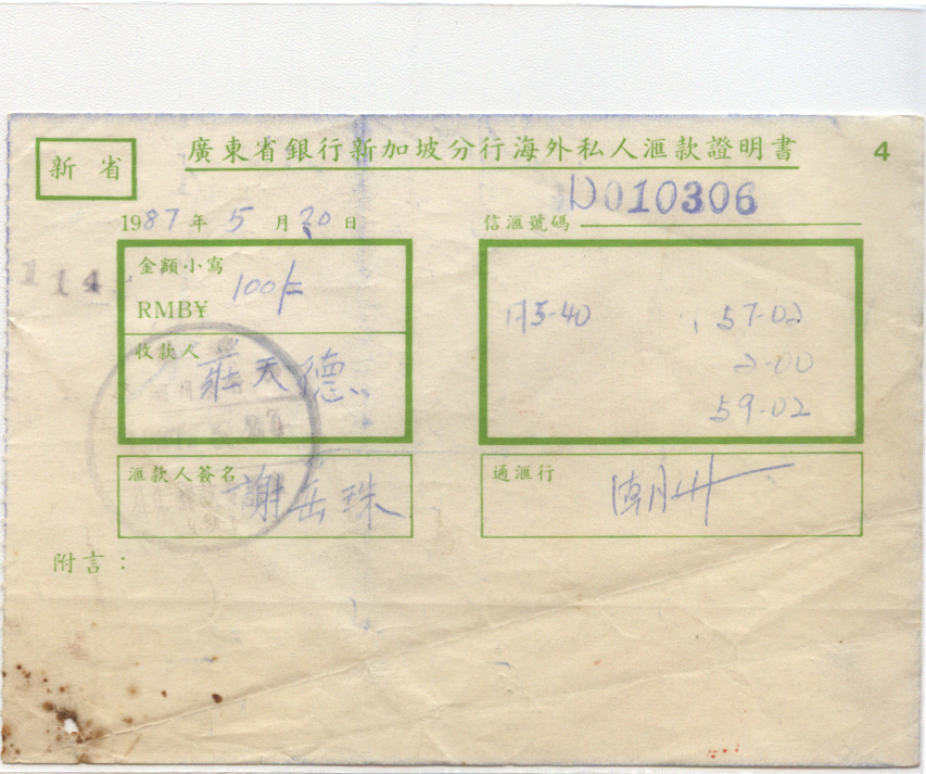<   1987年05月20日使用于新加坡分行的年代趣味藏品 ~ 点图放大