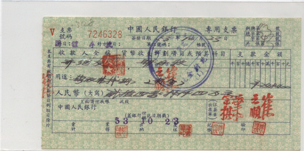 <   1953年10月23日使用于繁昌的年代趣味藏品 ~ 点图放大