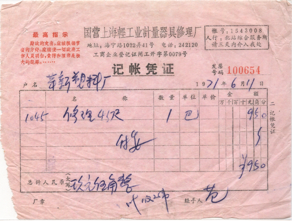 <   1971年06月11日使用于海宁路的年代趣味藏品 ~ 点图放大