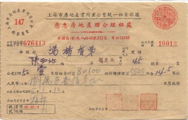 <   1955年01月12日使用于九江路的年代趣味藏品 ~ 点图放大