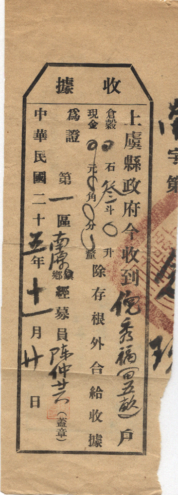 <   1936年11月20日使用于上虞县的年代趣味藏品 ~ 点图放大