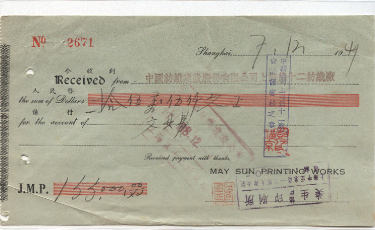 <   1949年07月12日使用于上海的年代趣味藏品 ~ 点图放大