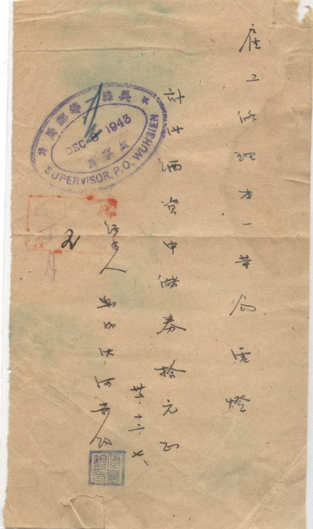 <   1943年12月08日使用于上海的年代趣味藏品 ~ 点图放大