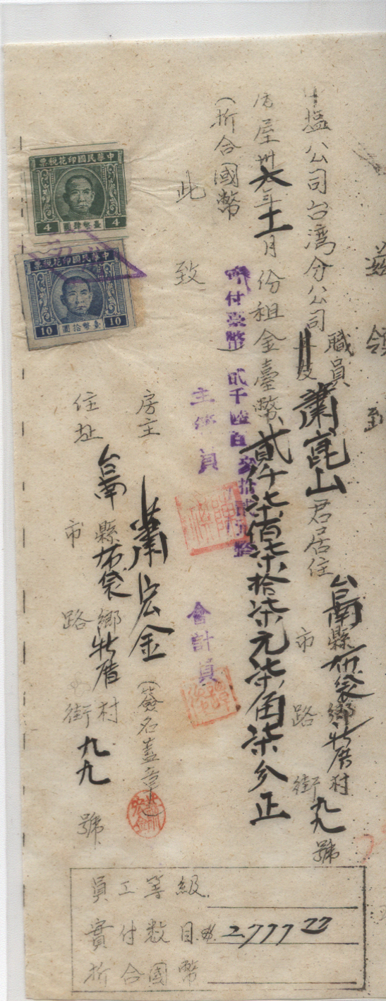 <   1947年11月01日使用于新厝村的年代趣味藏品 ~ 点图放大