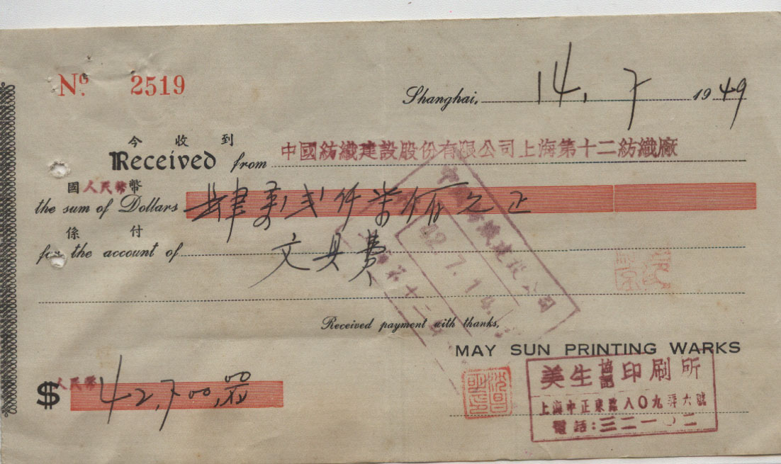 <   1949年07月14日使用于上海的年代趣味藏品 ~ 点图放大