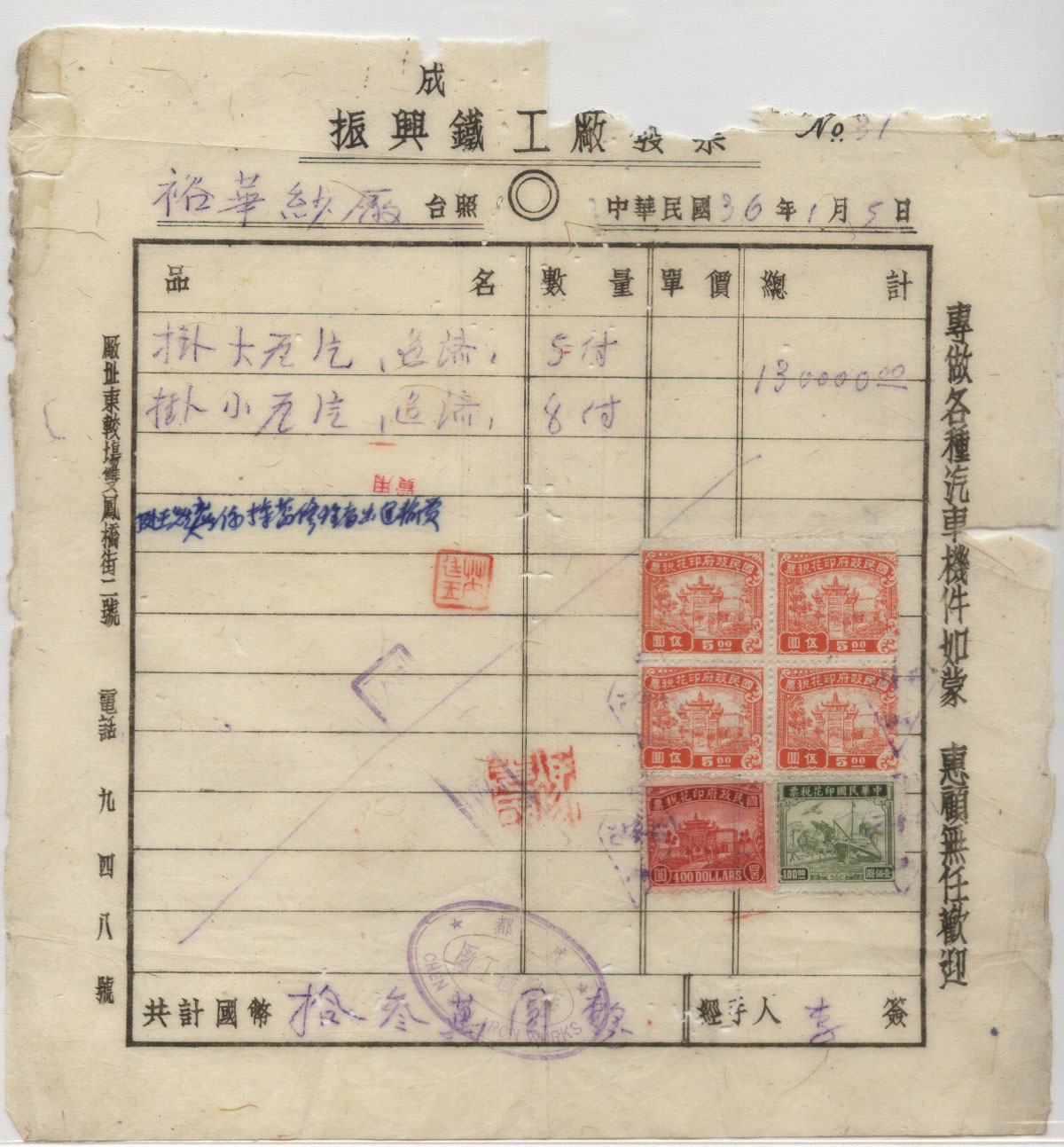 <   1947年01月05日使用于成都的年代趣味藏品 ~ 点图放大
