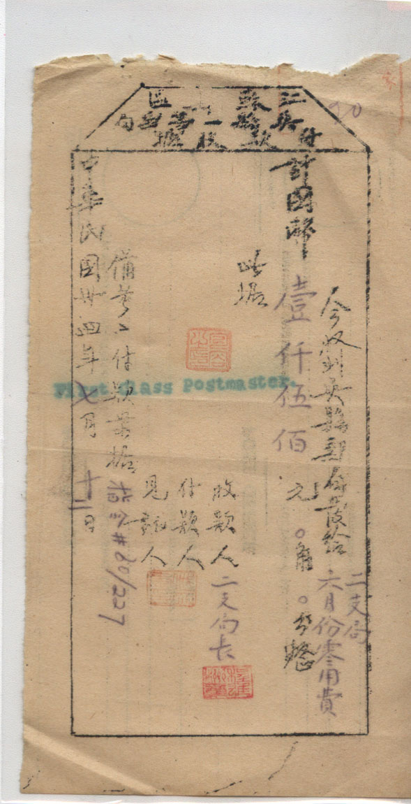 <   1945年07月12日使用于江苏的年代趣味藏品 ~ 点图放大
