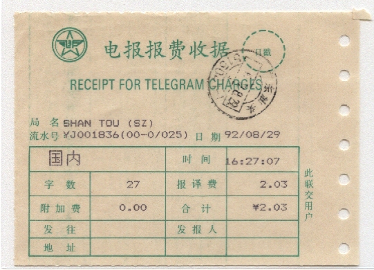 <   1992年08月29日使用于汕头的年代趣味藏品 ~ 点图放大