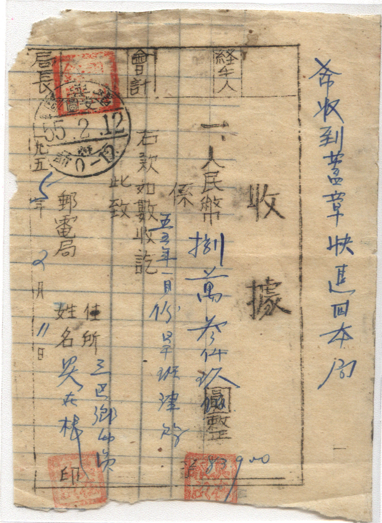 <   1955年02月12日使用于安图的年代趣味藏品 ~ 点图放大