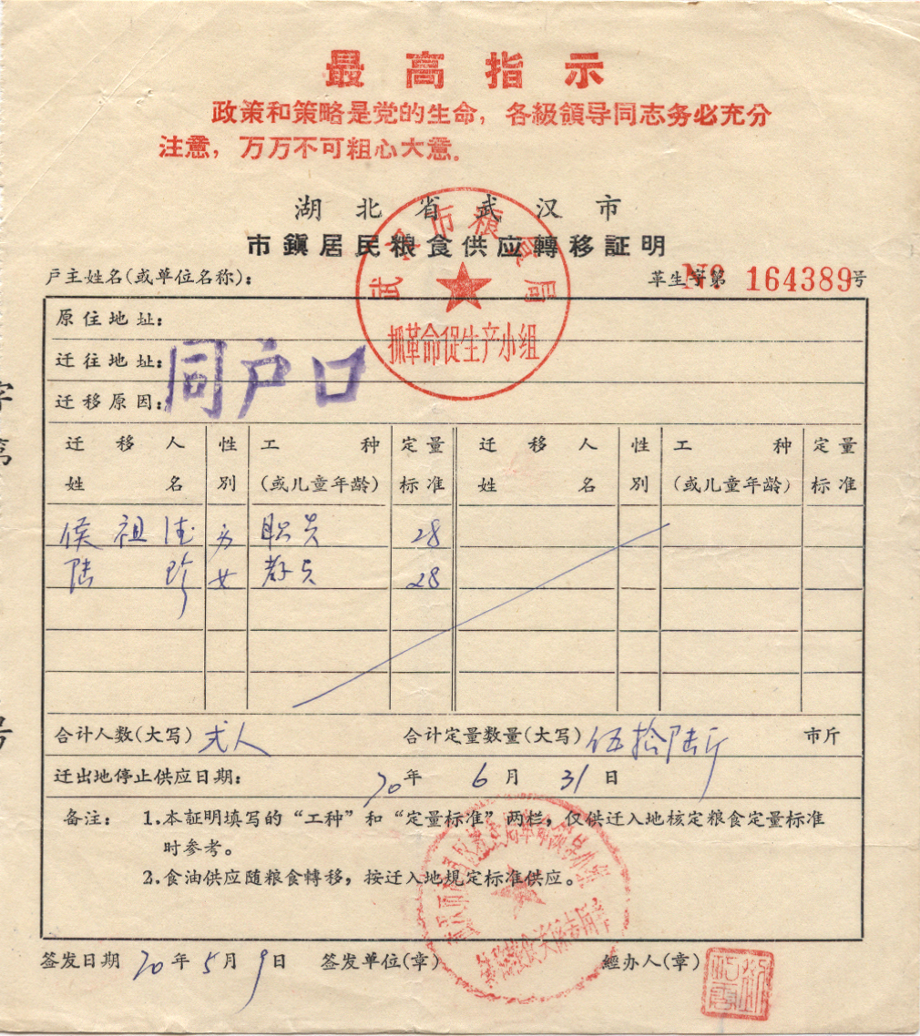 <   1970年05月09日使用于武汉市的年代趣味藏品 ~ 点图放大