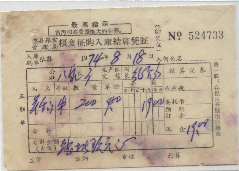 <   1974年08月18日使用于澧县的年代趣味藏品 ~ 点图放大