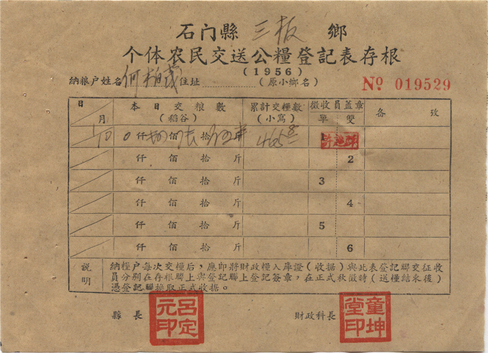 <   1956年10月01日使用于三板乡的年代趣味藏品 ~ 点图放大