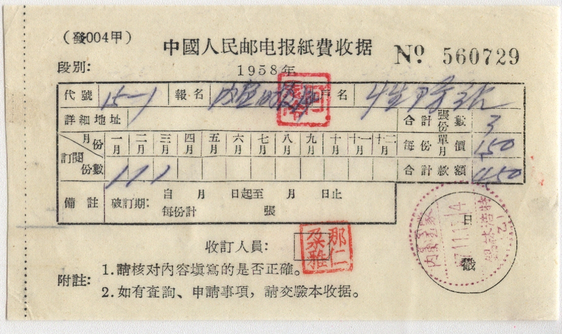 <   1957年11月17日使用于锡林浩特的年代趣味藏品 ~ 点图放大
