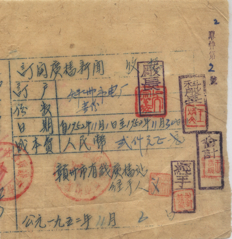 <   1952年11月06日使用于赣州市的年代趣味藏品 ~ 点图放大