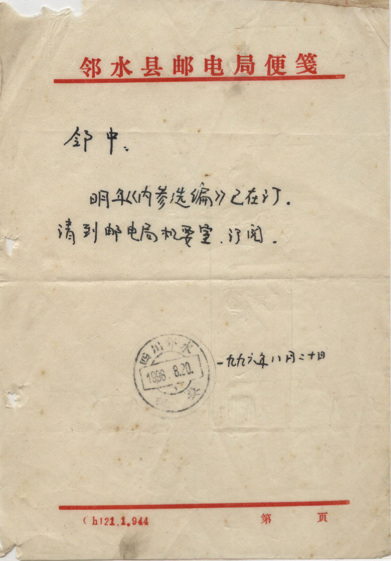 <   1996年08月20日使用于邻水的年代趣味藏品 ~ 点图放大