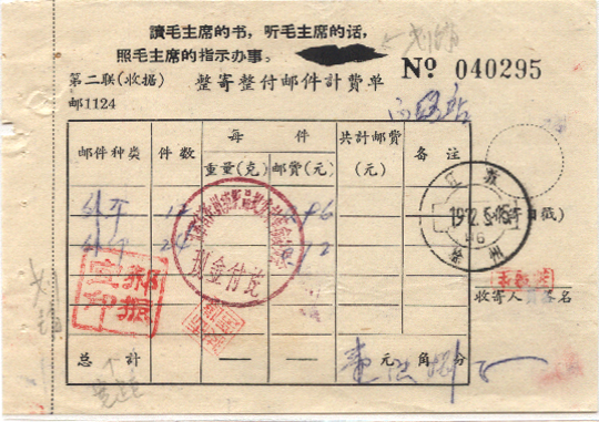 <   1972年05月15日使用于徐州的年代趣味藏品 ~ 点图放大