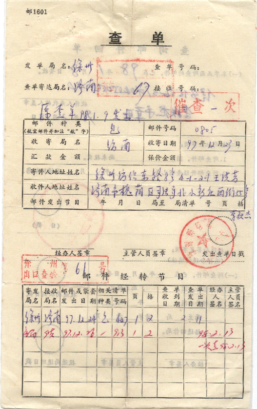 <   1997年12月23日使用于徐州的年代趣味藏品 ~ 点图放大