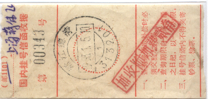 <   1993年01月05日使用于德清的年代趣味藏品 ~ 点图放大