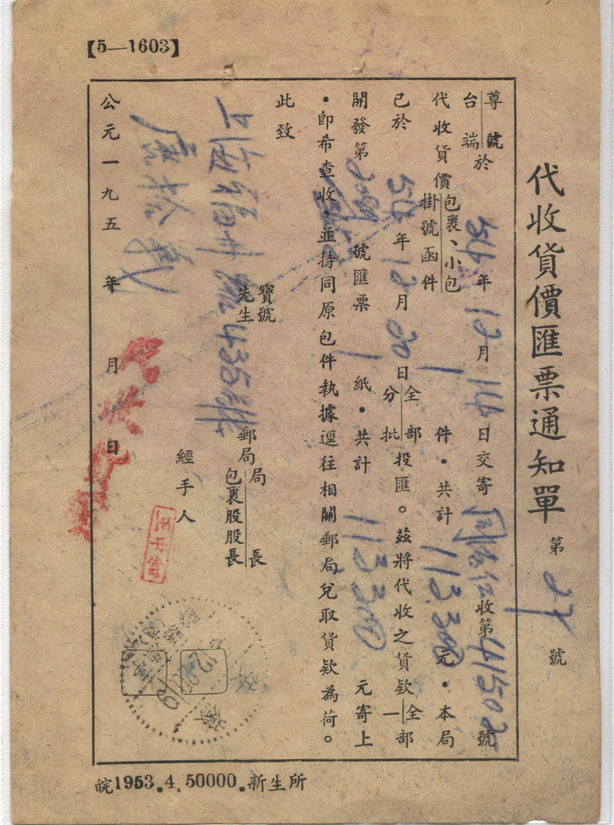 <   1954年12月20日使用于渔亭的年代趣味藏品 ~ 点图放大