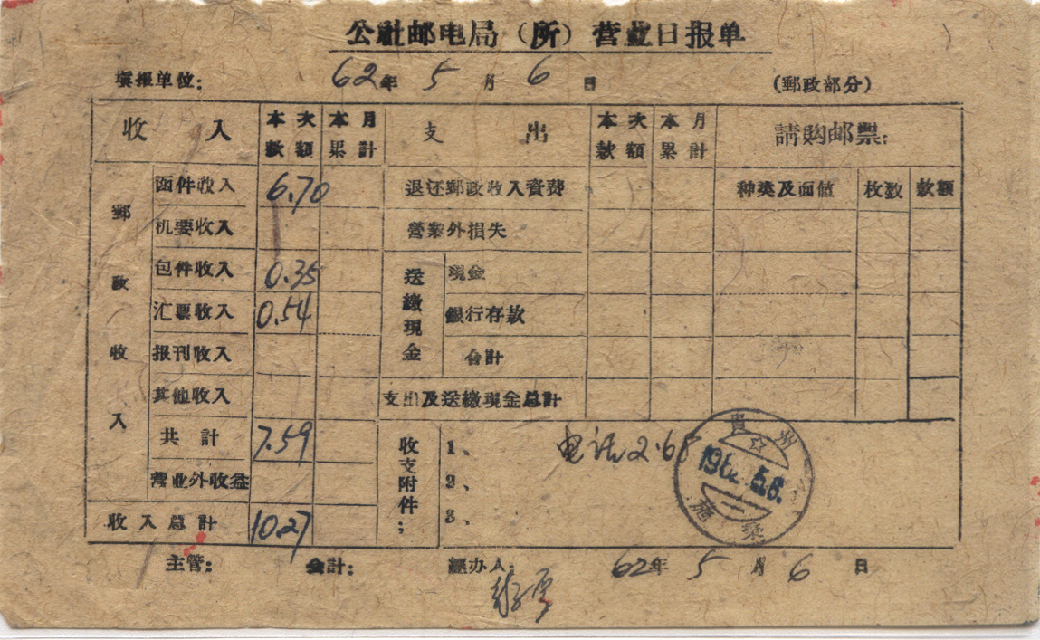<   1962年05月06日使用于施秉的年代趣味藏品 ~ 点图放大