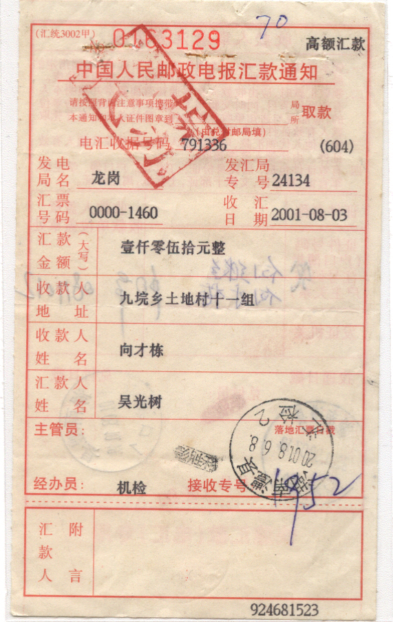 <   2001年08月06日使用于澧县的年代趣味藏品 ~ 点图放大