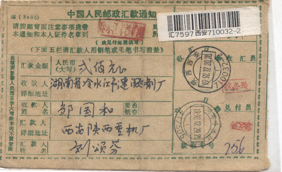 <   1992年12月20日使用于西安的年代趣味藏品 ~ 点图放大