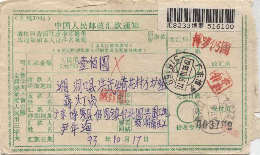 <   1993年10月16日使用于博罗的年代趣味藏品 ~ 点图放大