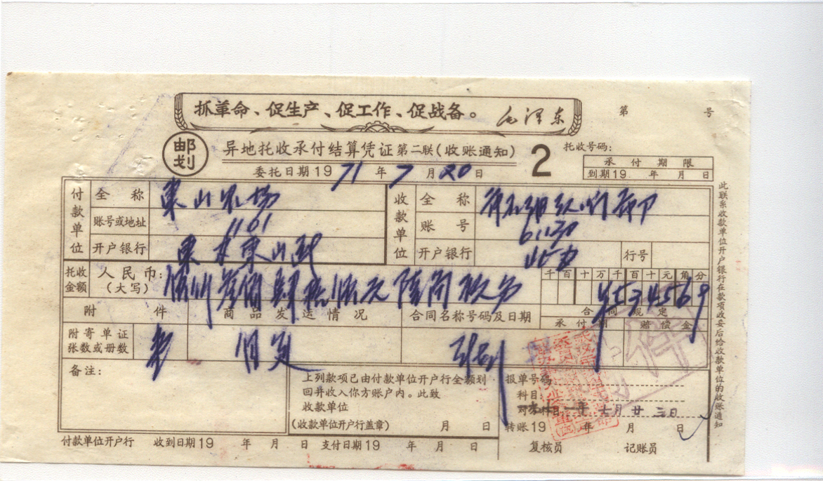 <   1971年07月20日使用于东山农场的年代趣味藏品 ~ 点图放大