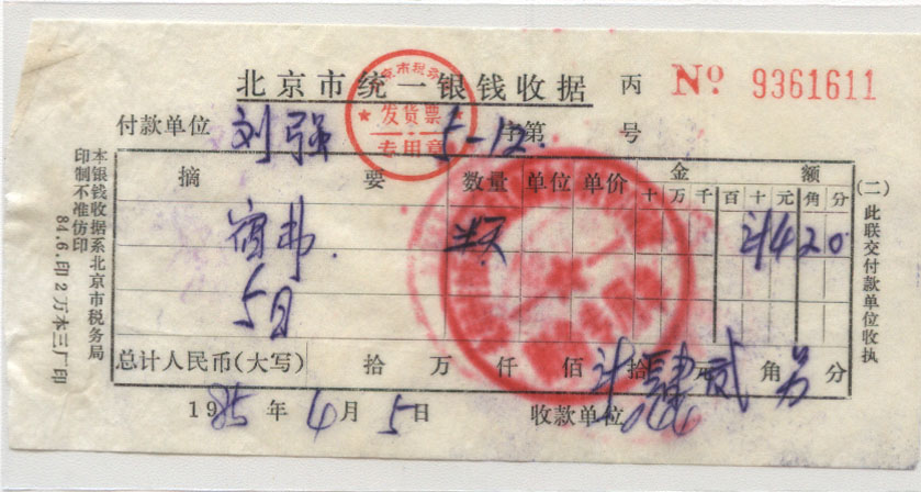 <   1985年04月05日使用于北京的年代趣味藏品 ~ 点图放大