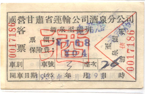 <   1956年04月29日使用于酒泉的年代趣味藏品 ~ 点图放大