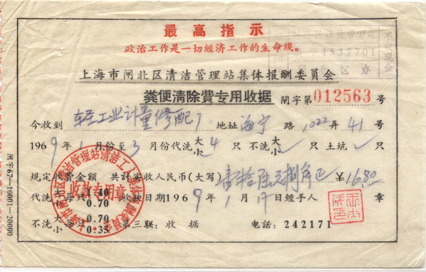 <   1969年01月17日使用于闸北的年代趣味藏品 ~ 点图放大