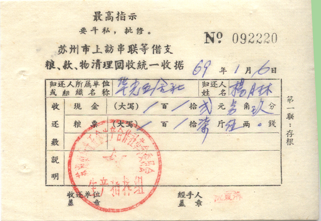 <   1969年01月06日使用于苏州的年代趣味藏品 ~ 点图放大