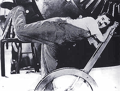 观众永远忘了片中查理被机器卷进卷出,以及被流水线弄得麻木机械,在人的鼻子钮扣拧螺丝的镜头。但当时,《摩登时代》被一些美国人认为是一部有红色共产倾向的危险性作品。